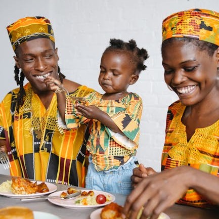 Travelers tasting local delicacies at a community event.